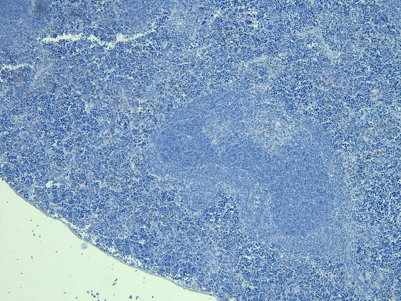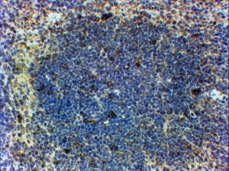 Immunohistochemistry: Paraffin embedded Mouse Spleen. Recommended concentration: 5-6 μg/mL.