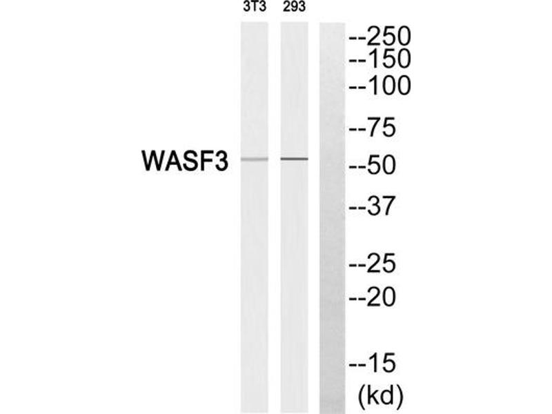 - The antiserum was produced against synthesized peptide derived from internal of human WASF3.