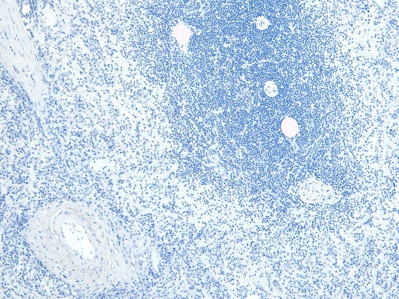 Immunohistochemistry: Paraffin embedded Human Spleen. Recommended concentration: 6 μg/mL.