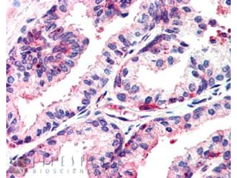 Immunohistochemistry: In paraffin embedded Human Prostate shows staining of nucleoli in a few epithelial cells. Recommended concentration, 2-4 μg/mL. Data obtained from a previous batch (different goat).