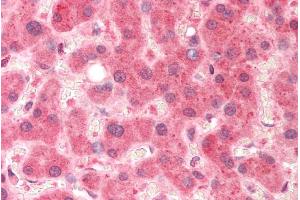 Immunohistochemistry: Paraffin embedded Human Liver and Spleen. Recommended concentration: 5 μg/mL.