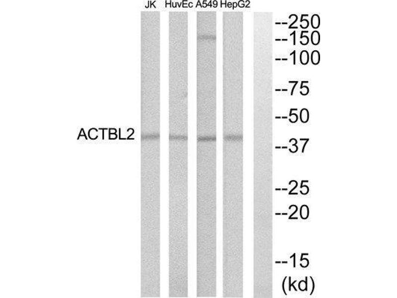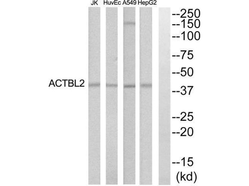 - The antiserum was produced against synthesized peptide derived from internal of human ACTBL2.