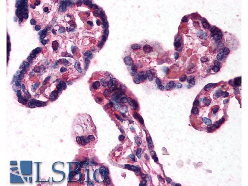 Immunohistochemistry: Paraffin embedded Human Placenta. Recommended concentration: 10 μg/mL.