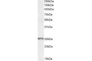 Western Blot: Approx 25-26 kDa band observed in Human Muscle lysates (calculated MW of 24.8 kDa according to NP_004701.1). Recommended concentration: 0.3-1 μg/mL. Primary incubation was 1 hour.
