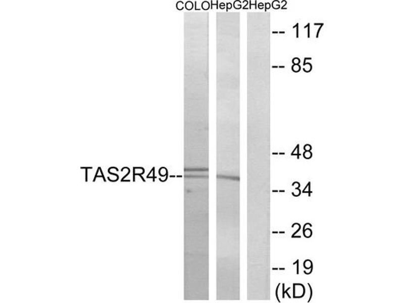 - The antiserum was produced against synthesized peptide derived from internal of human TAS2R49.