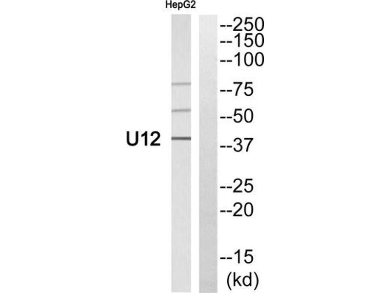 The antiserum was produced against synthesized peptide derived from N-terminal of human U12.