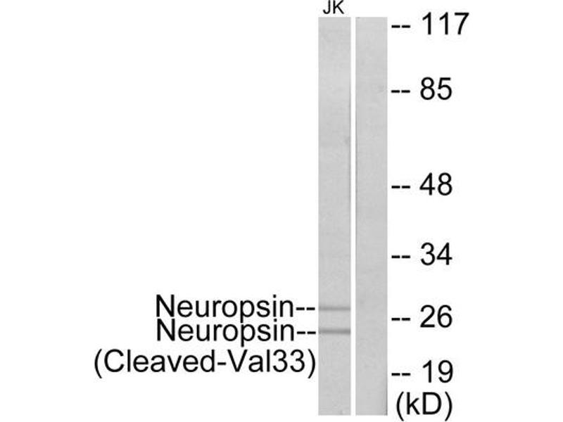 - The antiserum was produced against synthesized peptide derived from N-terminal of human Neuropsin.
