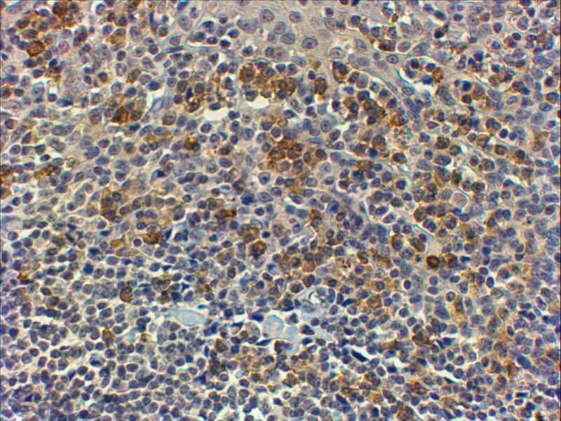 Immunohistochemistry: Paraffin embedded Human Tonsil. Recommended concentration: 4-6 μg/mL.