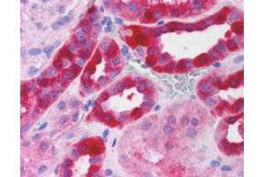 Immunohistochemistry: In paraffin embedded Kidney shows strong cytoplasmic staining of epithelial cells in distal convoluted tubules. Recommended concentration, 2-3 μg/mL.