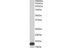 Western Blot: Approx 13 kDa band observed in Human Lymph Node, and Thymus lysates and similar bands are observed in lysates of cell lines Daudi and Jurkat (calculated MW of 12.5 kDa according to NP_002406.1). Recommended concentration: 0.01-0.03 μg/mL. Pri