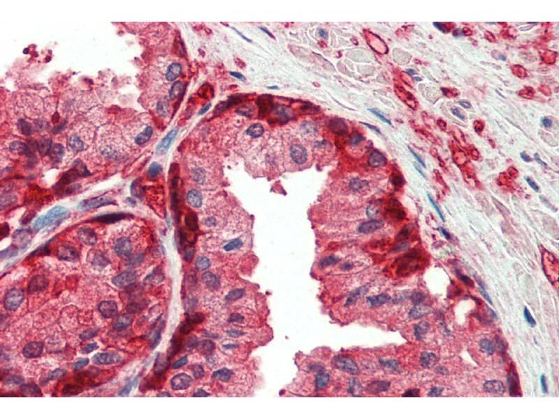 Immunohistochemistry: Paraffin embedded Human Prostate. Recommended concentration: 5 μg/mL.
