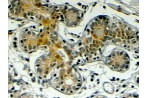DS IHC Results: In paraffin embedded Human Breast shows cytoplasm staining in luminal epithelial cells of ducts, while Human Placenta shows membranous staining. Recommended concentration: 4-6 μg/mL.
