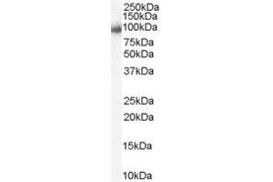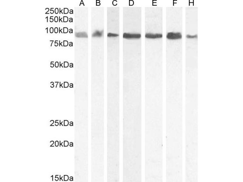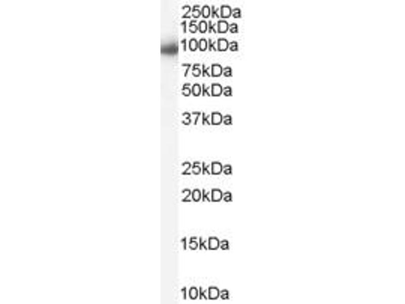 Western Blot: Approx 90-95- kDa band observed in lysates of cell lines A431, Daudi, HEK293, HeLa, Jurkat, Kelly and KNRK (calculated MW of 97.2 kDa according to Human NP_002256.2 and Rat NP_058759.2). Recommended concentration: 0.01-0.1 μg/mL. Primary incu
