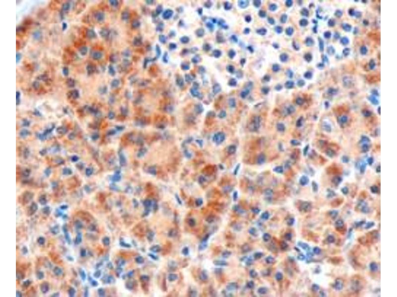 Immunohistochemistry: Paraffin embedded Human Pancreas. Recommended concentration: 3 μg/mL.