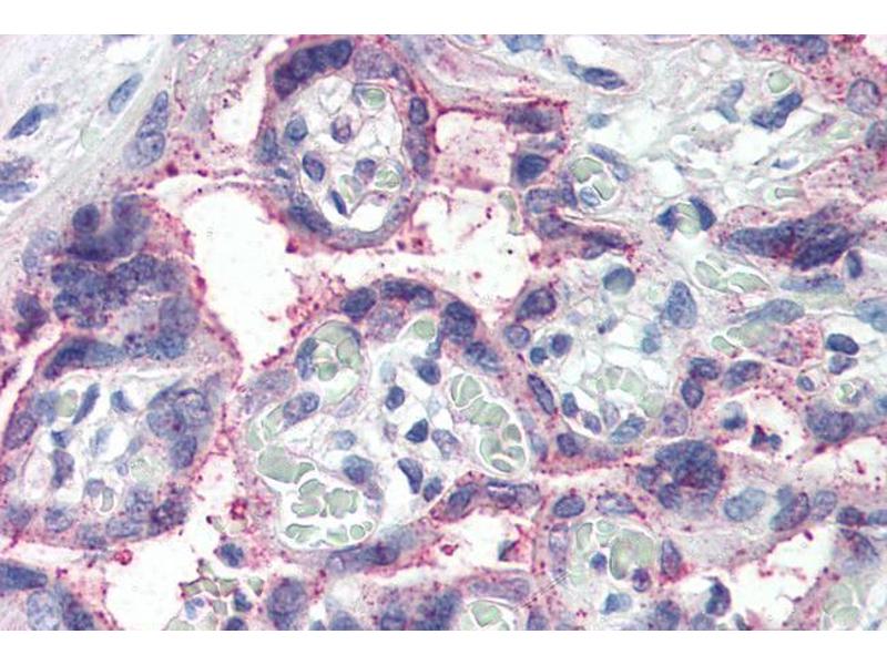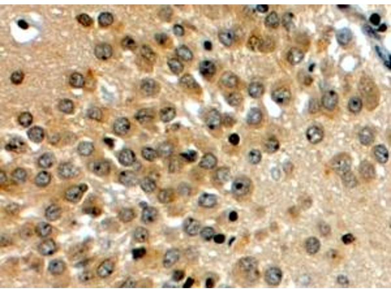 Immunohistochemistry: In paraffin embedded Human Hippocampus shows select nuclear staining and weaker staining in different comparments of the neuronal cell bodies. Recommended concentration: 4-6 μg/mL. Paraffin embedded Human Placenta. Recommended concen