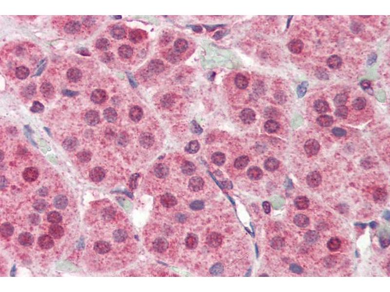 Immunohistochemistry: Paraffin embedded Human Skin and Adrenal Gland. Recommended concentration: 5 μg/mL.