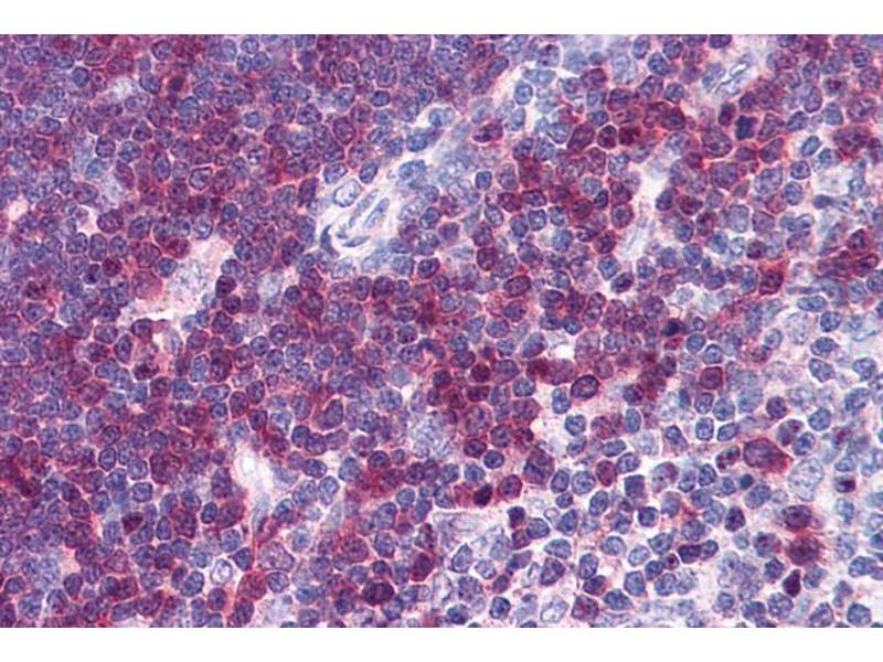 Immunohistochemistry: Paraffin embedded Human Thymus and Tonsil. Recommended concentration: 3.75 μg/mL.
