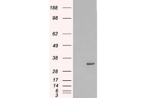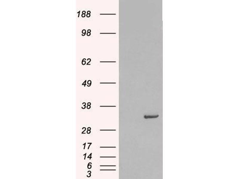 Western Blot: Approx 30 kDa band observed in Human Lymph Node lysates (calculated MW of 29.2 kDa according to NP_005810.1). In transfected HEK293 transiently expressing Human STX6 a band of approx. 30 kDa is observed. This band is not observed in the non-tr