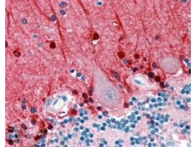 Immunohistochemistry: In paraffin embedded Human Cerebellum shows nuclear and fibrous staning. Recommended concentration, 2-4 μg/mL.