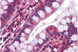 Immunohistochemistry: Paraffin embedded Human Small Intestine. Recommended concentration: 3.75 μg/mL.