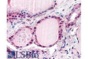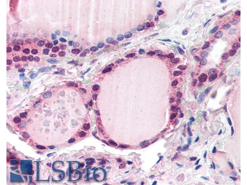 Immunohistochemistry: Paraffin embedded Human Thyroid. Recommended concentration: 5 μg/mL.