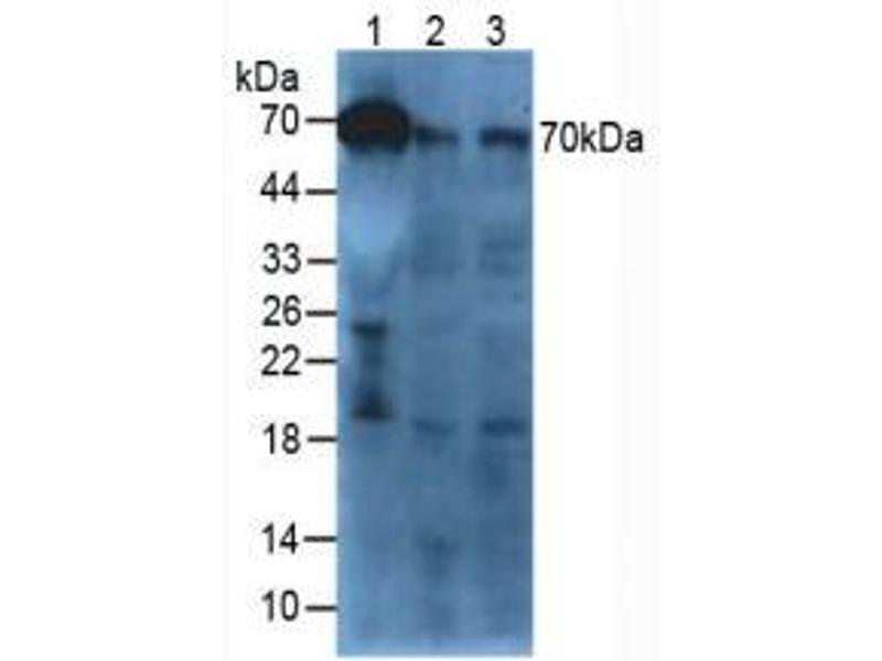 - Western blotting: 0.5-2 μg/mL,Immunocytochemistry in formalin fixed cells: 5-20 μg/mL,Immunohistochemistry in formalin fixed frozen section: 5-20 μg/mL,Immunohistochemistry in paraffin section: 5-20 μg/mL,Enzyme-linked Immunosorbent Assay: 0.05-2 μg/mL,Optimal working dilutions must be determined by end user.