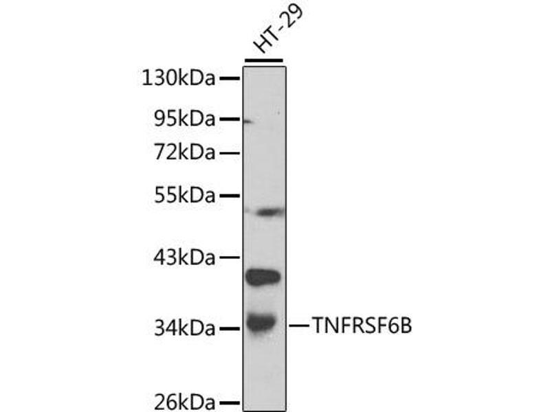 Der Kaninchen Polyklonal Anti-TNFRSF6B-Antikörper wurde für WB und IHC validiert. Er ist geeignet, TNFRSF6B in Proben von Human zu detektieren.