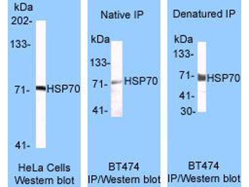Hsp70 protein from HeLa cells.Produced by fusion between BALB/c spleno-cytes and mouse myeloma NS-1 cells.