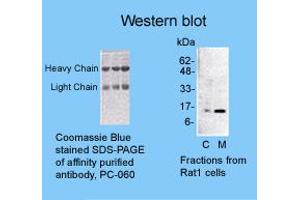 - Immunofluorescence: May be used with human and rat cells. Immunoprecipitation: Empirical. Western blot: Use at 1:5000, shows a MW of 14.4kDa. The optimal dilution for a specific application should be determined by the researcher.