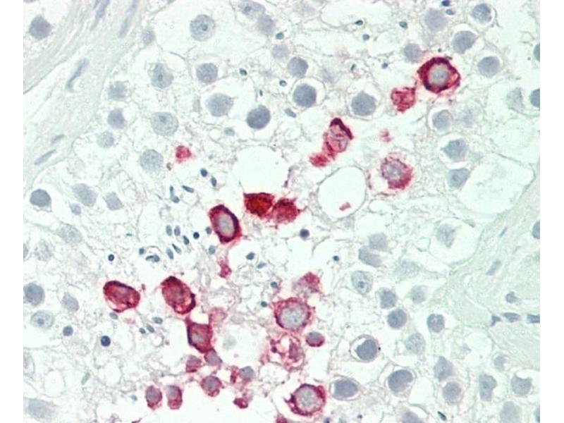 This IFNA4 antibody is generated from rabbits immunized with a KLH conjugated synthetic peptide between 162-189 amino acids from the C-terminal region of human IFNA4.