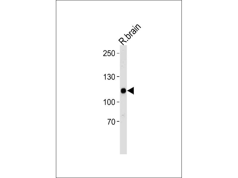 This Rat Cask antibody is generated from rabbits immunized with a KLH conjugated synthetic peptide between 589-616 amino acids from the Central region of rat Cask.