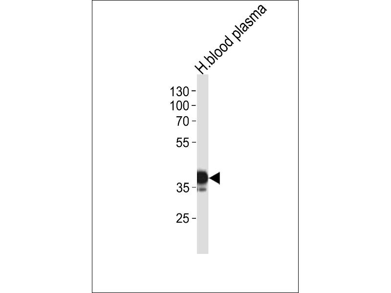 This SERPINA7 antibody is generated from rabbits immunized with a KLH conjugated synthetic peptide between 37-65 amino acids from the N-terminal region of human SERPINA7.
