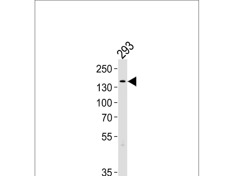 This TSC2 antibody is generated from rabbits immunized with a KLH conjugated synthetic peptide between 1397-1426 amino acids from the Central region of human TSC2.