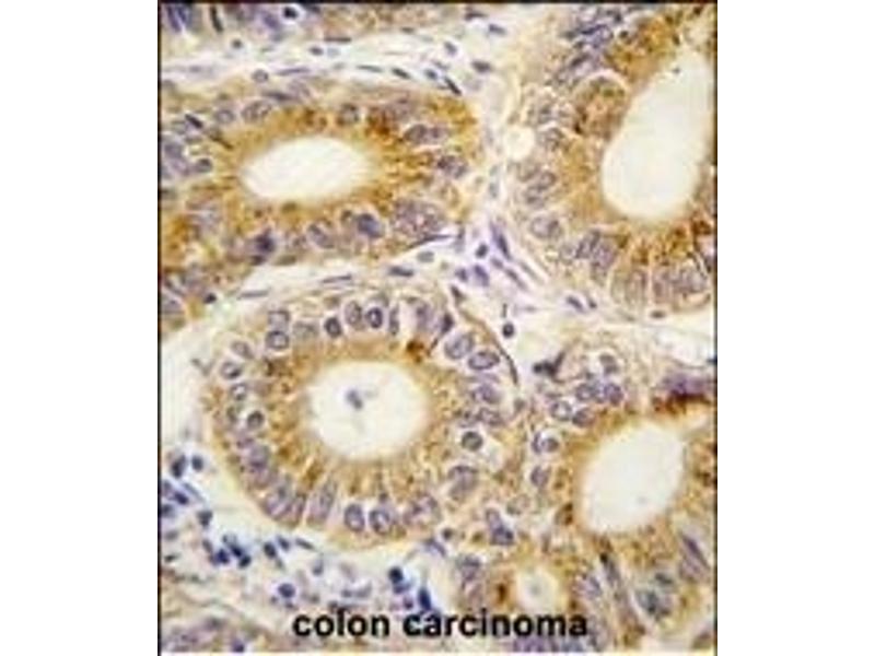 This YARS2 antibody is generated from rabbits immunized with a KLH conjugated synthetic peptide between 399-427 amino acids from the C-terminal region of human YARS2.