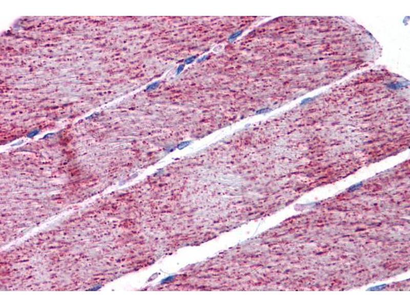 DS IHC Results: Paraffin embedded Human Skeletal Muscle and Heart. Recommended concentration: 3.75 μg/mL.