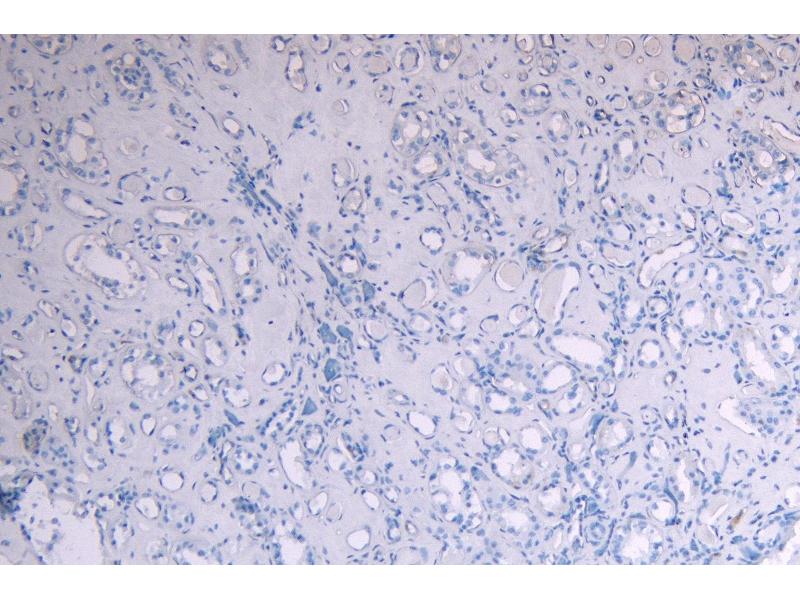 Immunohistochemistry: Paraffin embedded Human Kidney. Recommended concentration: 4 μg/mL.