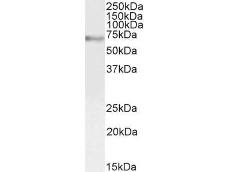 Western Blot: Approx 70 kDa band observed in lysates of cell line MOLT4 and in preliminary testing of Human Bone Marrow and Lymph Node lysate (calculated MW of 72.3 kDa according to NP_005366.2). Recommended concentration: 1-3 μg/mL.