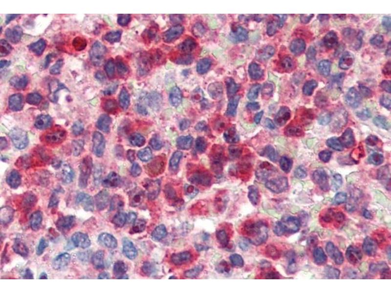 Immunohistochemistry: Paraffin embedded Human Testis and Spleen. Recommended concentration: 2.5 μg/mL.