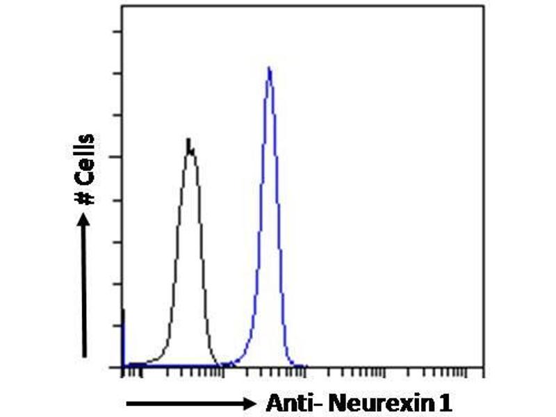 Western Blot: In transfected HEK293 transiently expressing full-length Human NRXN1 (myc and DYKDDDDK tagged), bands of approx. 75 and 60 kDa were observed. No bands were observed in mock-transfected HEK293 and the same band was observed using anti-DYKDDDD