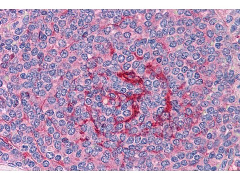 Immunohistochemistry: Paraffin embedded Human Tonsil and Spleen. Recommended concentration: 3.75 μg/mL.