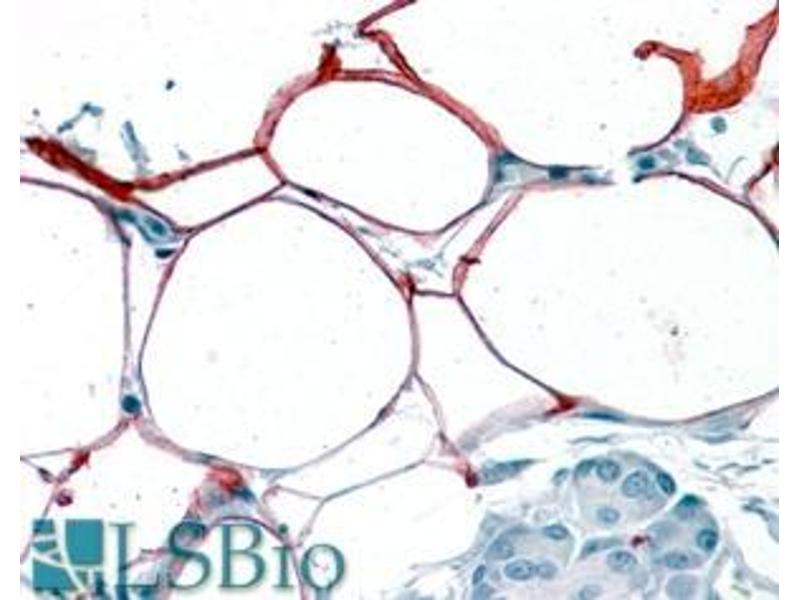 Immunohistochemistry: In paraffin embedded Human Pancreas shows membranous and cytoplasm staining in adipocytes. Recommended concentration, 3-6 μg/mL.