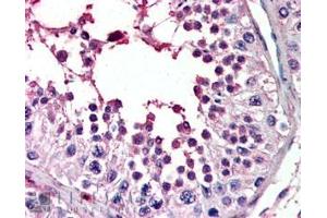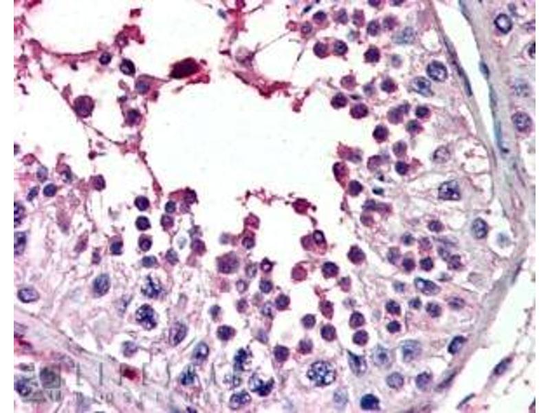 Immunohistochemistry: In paraffin embedded Human Testis shows nuclear and extra-nuclear staining in spermatids. Recommended concentration, 3-5 μg/mL.