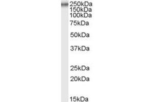 Western Blot: Approx 250 kDa band observed in Rat Testis lysates (calculated MW of 159 kDa according to Rat NP_001100328.1). Recommended concentration: 0.1-1.5 μg/mL.