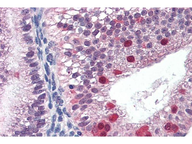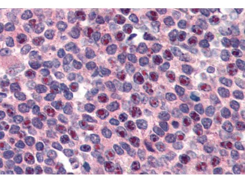 Immunohistochemistry: Paraffin embedded Human Uterus and Spleen. Recommended concentration: 3 μg/mL.