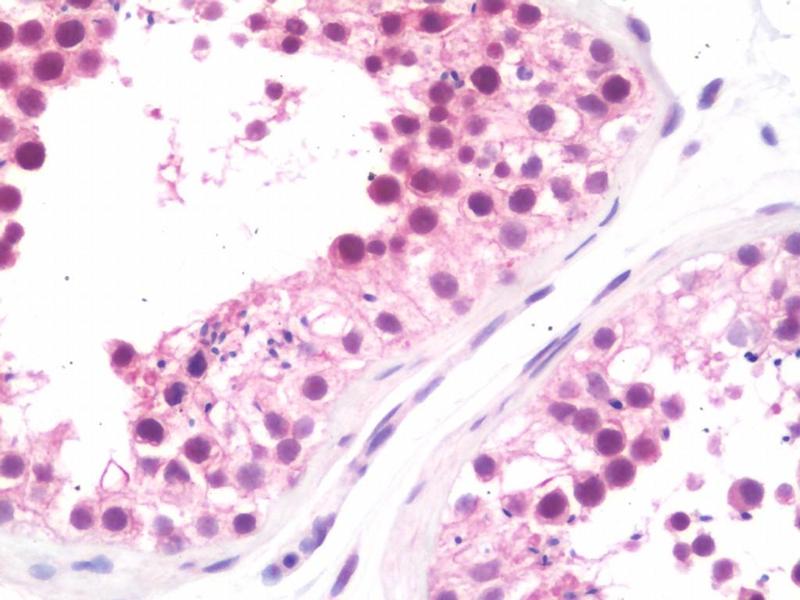 This NEK7 antibody is generated from rabbits immunized with a KLH conjugated synthetic peptide between 1-30 amino acids from the N-terminal region of human NEK7.