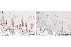 In cardiac tissue brain natriuretic peptide (BNP) is synthesized as 134 amino acid precursor (prepro-BNP), which is cleaved by proteases to form a 26 aa "signal" peptide and a 108 aa pro-BNP. Proteolytic digestion of pro-BNP results in formation of 76 aa amino-terminal NT-proBNP and biologically active 32 aa BNP hormone molecule. Both proBNP and NTproBNP circulate in human plasma and have been proposed as markers for early diagnosis of left ventricular dysfunction as well as prognostic markers of possible cardiac complications at patients with heart failure.Synonyms: BNP, Brain natriuretic peptide, Gamma-brain natriuretic peptide, NPPB, proBNP