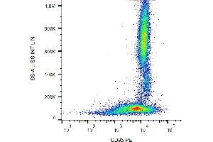 The antibody LT95 reacts with an extracellular epitope on CD95 (Fas/APO-1), a 46 kDa single chain type I glycoprotein of the tumour necrosis factor/nerve growth factor (TNF/NGF) receptor superfamily, expressed on a variety of normal and neoplastic cells. It seems that the antibody LT95 does not induce Fas mediated apoptosis, although it cross-blocks anti-Fas DX2 antibody that recognizes a functional epitope of Fas molecule.