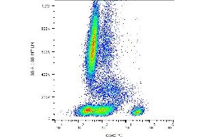 - Flow cytometry: The reagent is designed for analysis of human blood cells using 20 μL reagent / 100 μL of whole blood or 106 cells in a suspension. The content of a vial (2 ml) is sufficient for 100 tests.