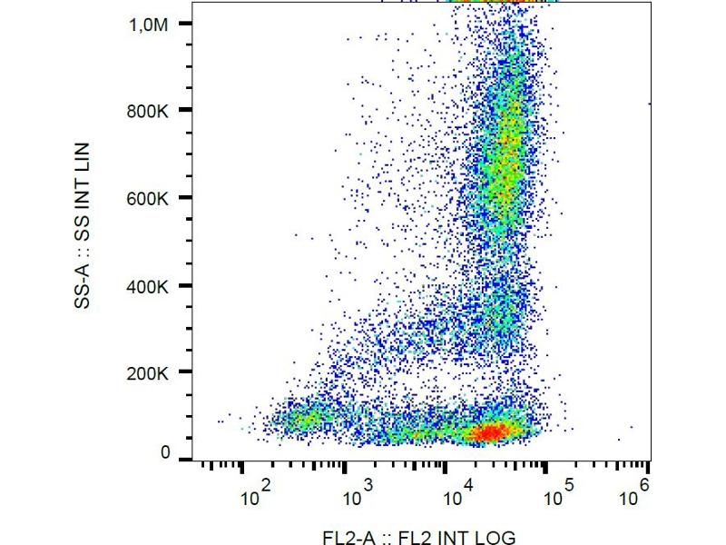 Flow cytometry: The reagent is designed for analysis of human blood cells using 20 μL reagent / 100 μL of whole blood or 106 cells in a suspension. The content of a vial (2 ml) is sufficient for 100 tests.