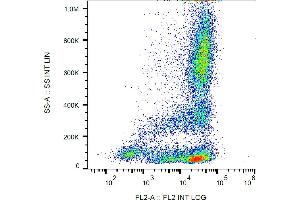Flow cytometry: The reagent is designed for analysis of human blood cells using 20 μL reagent / 100 μL of whole blood or 106 cells in a suspension. The content of a vial (2 ml) is sufficient for 100 tests.